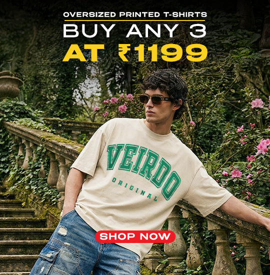 Last but definitely not least, we have the Veirdo Royal Blue Oversized Back Graphic Printed T-shirt. This tee is all about making a statement. The oversized fit is perfect for layering, and the royal blue colour is bold and eye-catching. The real magic happens on the back, though. With 'Veirdo' repeated five times in a crazy lime-yellow font, this tee is pure Veirdo energy. It’s the go-to choice for anyone who wants to keep their style game on point and showcase their Veirdo pride.