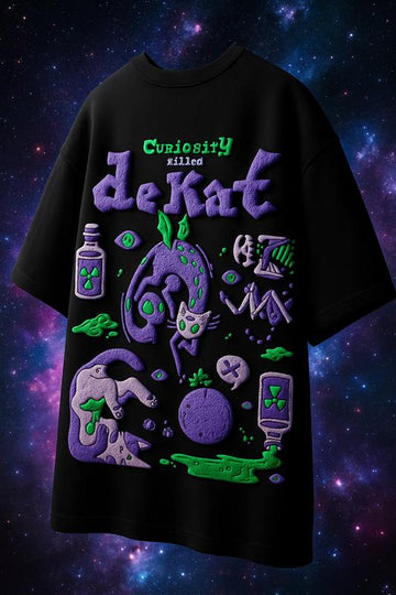 Curiosity Black Oversized Puff Printed Exclusive T-shirt