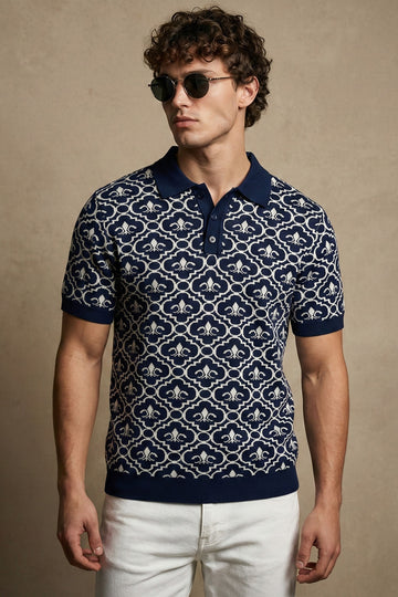 Navy Jacquard Textured Regular Fit Exclusive Polo T-Shirt