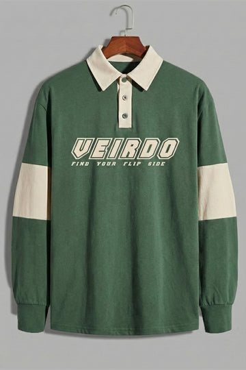 Veirdo Olive & Beige Oversized Full Sleeve Exclusive Polo T-shirt
