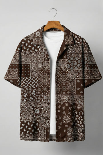 Monochrome Mosaic Brown All Over Print Oversized Exclusive Shirt
