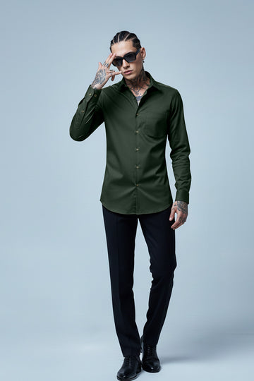 Green Plain Regular Fit Single Pocket Full Sleeve Exclusive Shirt