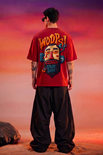Stay Sick Red Oversized Puff Printed Exclusive T-shirt