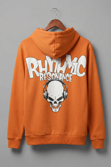 Rhythmic Orange Regular Fit Back Printed Hoodie