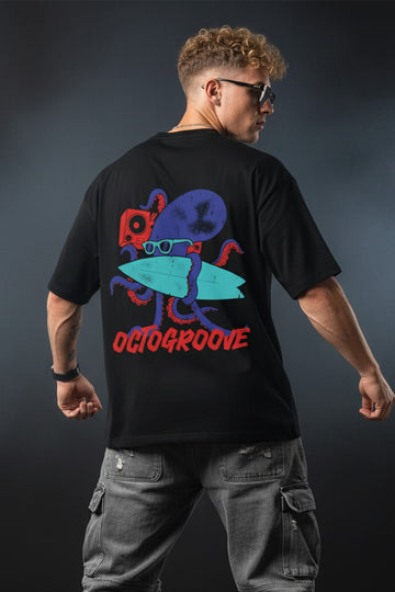 OCTOGROOVE Black Oversized Graphic Back Printed T-shirt