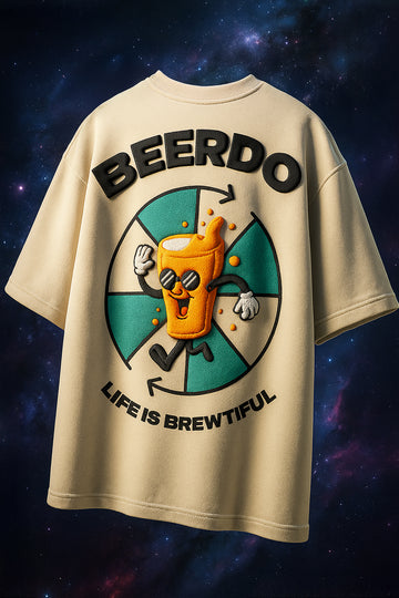 BEERDO Beige Oversized Puff Printed Exclusive T-shirt
