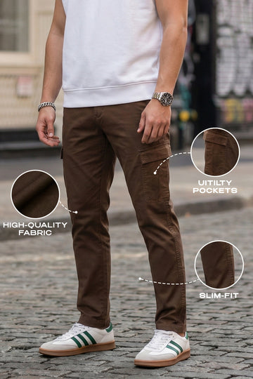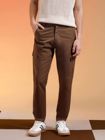 Brown Pure Woven Narrow Fit 5 Pocket Cargo