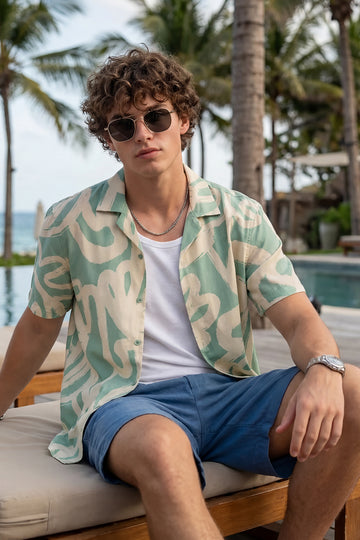 Coastal Canvas Beige All Over Print Oversized Exclusive Shirt