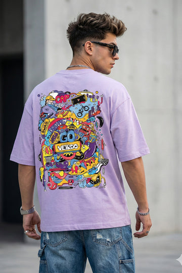 Doodle Lilac Oversized Back Graphic Printed T-shirt