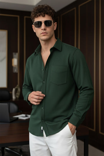 Green Plain Regular Fit Single Pocket Full Sleeve Exclusive Shirt