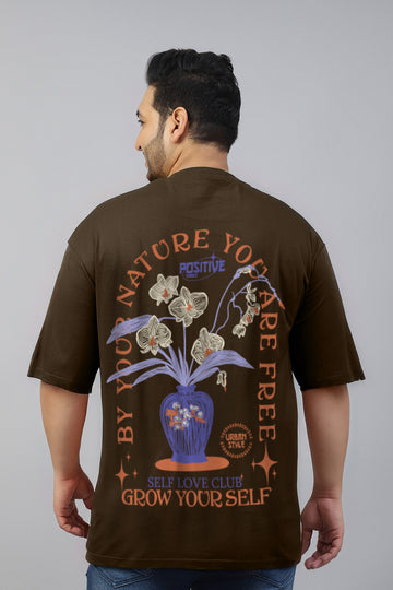 Grow Yourself Brown Graphic Printed Plus Size T-shirt