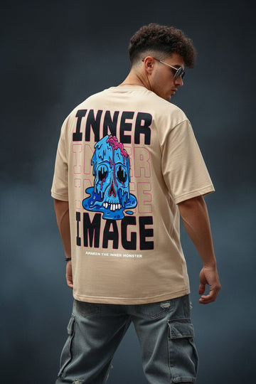 INNER IMAGE Beige Oversized Back Graphic Printed T-shirt