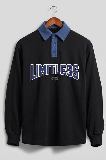 Limitless Balck & Navy Oversized Full Sleeve Polo T-shirt