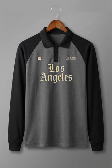 Los Angeles Grey Oversized Full Sleeve Exclusive Polo T-shirt