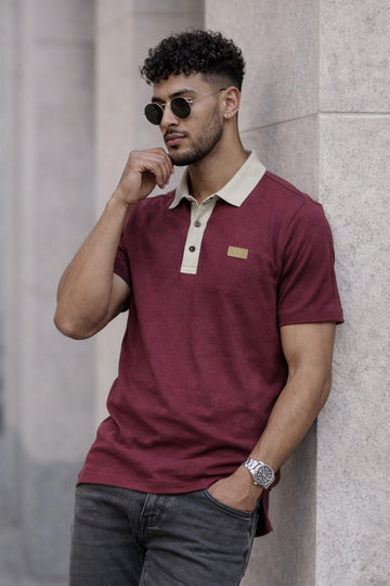 Maroon Contrast Collar Economic Regular Fit Pique Polo