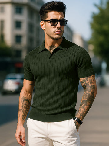 Olive Ribbed Flatknit Textured Regular Fit Exclusive Polo T-Shirt