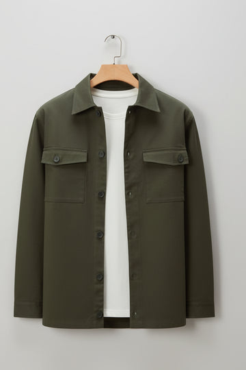 Olive Veirdo Exclusive Premium Button Detail Exclusive Shacket