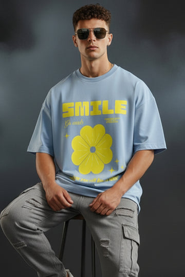 Smile Blue Oversized Chest Graphic Printed T-shirt