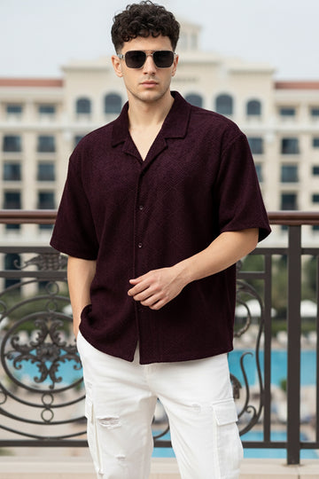 Wine Jacquard Plain Oversized Exclusive Shirt
